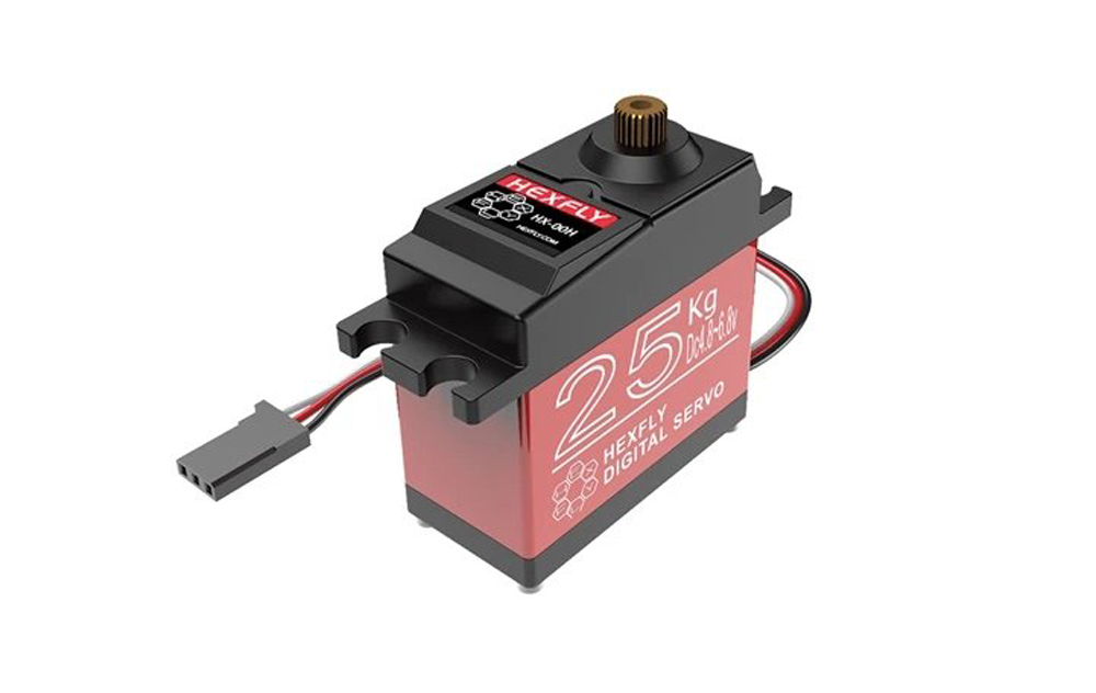 The Hexfly 25KG digital steering servo provides more than enough torque to steer the Kaiju's massive tires.