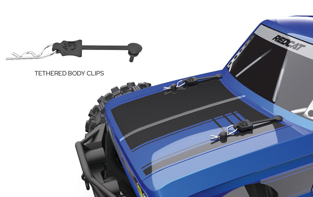 The Kaiju’s beautiful paint and a realistic decal set really make this truck stand out. The Kaiju even includes little luxuries like body clip lanyards that will help ensure your time is spent ripping through the dirt with the Kaiju’s aggressive tires, instead of shuffling through it, searching for lost body clips.