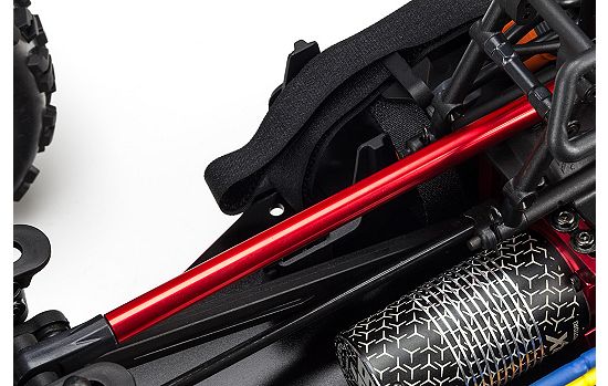 For the durability needed to support intense brushless performance, ARRMA® uses a strong anodized aluminum chassis as the foundation. A center body support and new aluminum center brace plus composite chassis side pods add more strength. All-metal diff outdrives and gearbox internals plus durable steel driveshafts provide a reliable, heavy-duty drivetrain that holds up to extreme, high-speed bashing. A new "never loose" aluminum steering servo saver and "never pop" ball ends supply more precision, reliability and confidence.