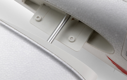 The fuselage has threaded retainers for the aluminum spars, and integrated hands-free servo plugs for no manual wiring. With just 6 screws, no glue is required for assembly. The assembly can be completed in less time than it takes to charge a battery.