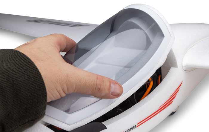 The canopy adopts a push latch design to prevent the canopy from flying off during flight.