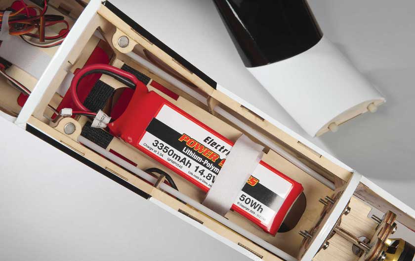 Your flight battery or fuel tank fits easily into this large, on-board compartment with magnetic hatch for easy access.