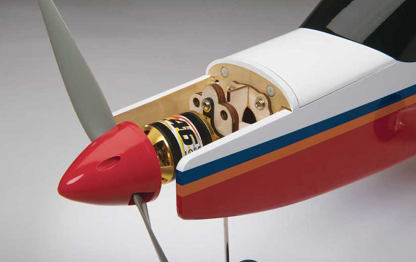 A vibration-reducing IsoSmooth Engine Mount is supplied for glow engine installation. If you prefer electric power, the model also comes with an electric motor mount.
