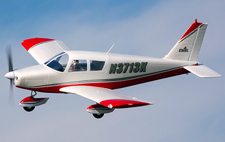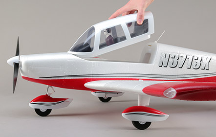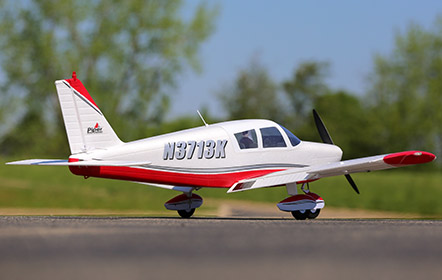 An accurate scale outline captures the iconic shape of the Cherokee including the constant chord wing that’s equipped with operational slotted flaps to deliver improved low-speed handling, shorter take offs and slower landings. The unique full-flying stabilator (stabilizer/elevator) offers authentic pitch control while the functional shock-absorbing nose strut and large wheels make it possible to fly from a wide variety of surfaces. And factory-installed LED lighting, including navigation lights, strobes on the wing tips, a tail beacon and landing lights, add to the realism and authenticity.