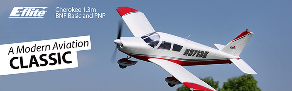 The revolutionary PA-28 Cherokee began rolling off a brand-new Vero Beach, Florida assembly line in the early 1960s. Its simple design and smooth handling made it a popular light aircraft for successful flight training and personal use. Since then, over 32,000 Cherokees and variants have been built making it the fourth-most-produced airplane in the world. The E-flite® Cherokee 1.3m scale model is a tribute to the general aviation classic that features realistic scale details including functional navigation lights, flaps, a full-flying stabilator and more, plus 3S and 4S LiPo compatibility and incredible handling any RC pilot can appreciate.