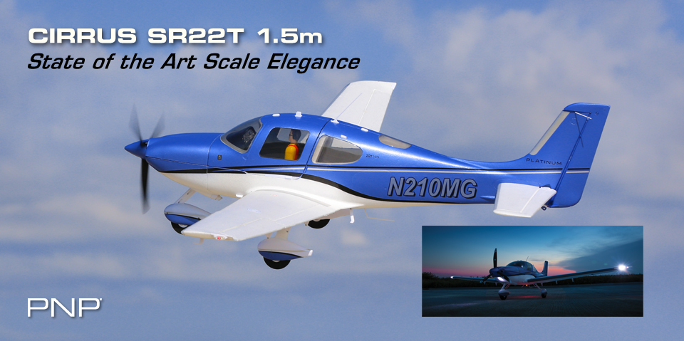 Cirrus Aircraft has blazed a trail for the future of single-engine aircraft by developing modern safety, performance and amenity standards pilots crave. Generation 6 of their SR22T carries on the innovation hot-streak. As a result, more pilots can consider personal air travel the practical everyday commuting solution predicted by technology experts decades ago. The E-flite® Cirrus SR22T 1.5m park flyer is an officially licensed replica inspired by the original to deliver rich detail and a host of modern functional features that make scale flight an uncompromised thrill ride for more RC pilots than ever before.