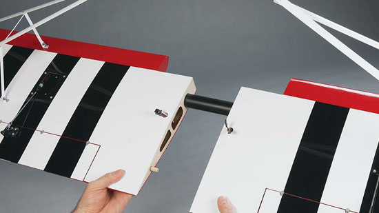 A joiner tube makes the two-piece wing easy to install. Wing struts are included, and can be left attached to the wings for extra convenience. Fixed landing gear makes the Citabria easy to transport.