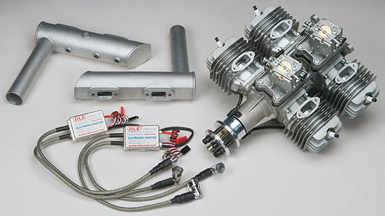 DLE-222 222cc 4-Cyl Gas Engine with Electronic Ignition and Mufflers
