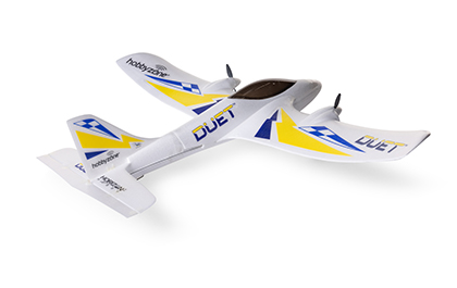 Learn to fly radio-controlled (RC) airplanes successfully with the HobbyZone Duet S 2! Even if you've never flown an RC airplane before, this ultra-micro class model is a great choice for a smaller trainer that can be flown in large yards, small parks, soccer fields, and other suitable spaces where larger models can’t typically be flown by first-time pilots. It’s equipped with Horizon Hobby's exclusive and innovative SAFE® (Sensor Assisted Flight Envelope) technology that helps to prevent overcontrol, loss of orientation, and crashes so nearly everyone can learn to fly successfully! Beginner and Experienced modes allow you to choose the level of stability and control you need, or are ready to try, at the push of a button/stick. It also features telemetry capabilities that send flight battery voltage to the transmitter to make the pilot better aware of approximately how much “power” remains while flying. Three-channel operation offers elevator (climb/descend), steering, and throttle control, while the twin electric motors deliver plenty of power plus differential thrust to turn.