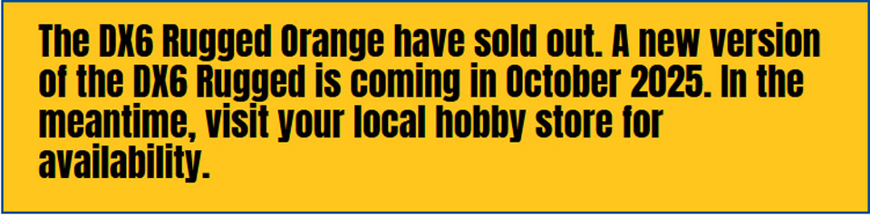 Your vehicles are extremely durable. Why isn’t your transmitter? The Spektrum™ DX6 Rugged™ 6-channel surface transmitter redefines radio control with a level of durability to match the tough conditions off-roaders, bashers, and boaters encounter constantly. Like its predecessor, the DX5 Rugged, it features superb ergonomics. The result is a class-leading RC system with unmatched durability and other innovative features that unite with precision, versatility, and convenience you won’t want to drive without.