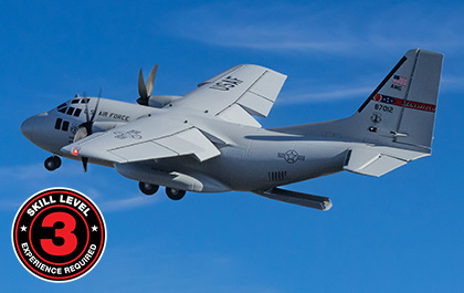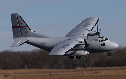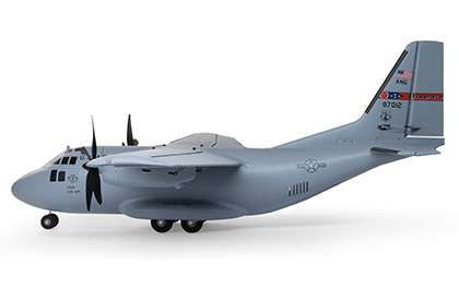 There are eight factory-installed servos, including metal-geared servos on all of the control surfaces plus the functional cargo door so you can carry and drop creative payloads from the large cargo bay. Realistic-looking LED landing, navigation, and simulated strobe lights are powered from the flight battery so you can fly from dawn until dusk — from paved, grass, or dirt surfaces; off snow using the included skis; or from large ponds and lakes using optional floats (sold separately). Remove the magnetically secured nose cone to install a GoPro® or similar camera for recording aerial HD footage or mount a separate FPV camera on the large top hatch (cameras/gear sold separately). Plus, you can use the included decals to customize the now fully-painted gray finish with Ohio Air National Guard, Air Force, Army, Coast Guard, Marines, Navy, and other markings to personalize your model! And the result is the most capable, versatile, and fun to fly twin yet for a wide range of intermediate to experienced pilots interested in scale-like, sport, and even aggressive 3D aerobatic flying.