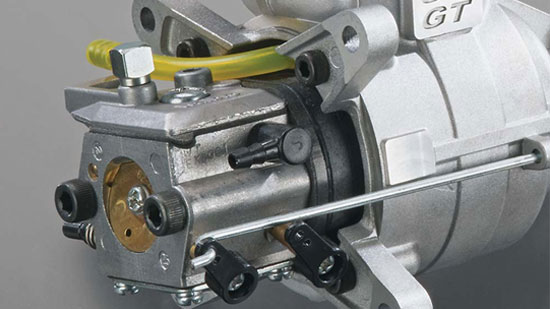 Mounting the Walbro carb at the rear allows for easy installation and easy needle access. The backplate mount is designed to reduce vibration, and the carb features a factory-supplied choke linkage, which needs to be set up by the modeler.