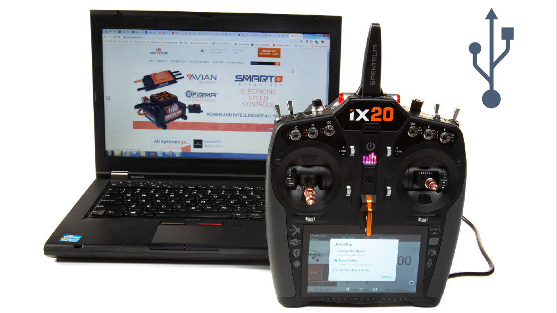 NEXT GENERATION INNOVATIONThe Spektrum™ iX20 smart radio is our most powerful, feature-packed 20-channel air transmitter to date and host to a wide array of innovations and upgrades. It was designed to meet the present and future needs of pro pilots who want top-class features, easy programmability, and the capabilities required to fly high-performance aircraft.The iX20 may be the most advanced intelligent transmitter available with an Android 7 touch-screen interface – but that doesn’t mean it's hard to use. The giant 5-inch, 720p color touch-display makes working with state-of-the-art technology comfortable and exciting. All-new Spektrum AirWare™ firmware has been streamlined and enhanced to deliver an overall faster experience. When you delve into the details, you'll see that the iX20 is much more than just our next intelligent transmitter.EXPERTLY DESIGNED ERGONOMICSDesigned and ergonomically engineered by Mirco Pecorari from AircraftStudioDesign, the iX20 has been optimized to fit a wide range of pilot needs. Its Hall-effect sensing gimbals offer long-lasting precision with an ultra-smooth feel that's conveniently adjustable from the front of the transmitter. The result is a sense of style, comfort and functionality that perfectly complements the reliability, speed and precision of Spektrum™ DSMX® technology.Key Ergonomic FeaturesHall-effect sensor, quad-bearing gimbalsConvenient front-access gimbal adjustmentAdjustable stick length and tensionEasy-grip slide levers with firm-center detent plus spring tension adjustment accessible from the front of the transmitterContoured, non-slip rubber gripsUser-adjustable mode configurations (1, 2, 3 or 4)User-adjustable switch assignments with touch sensingPushbutton power switch with sleep modeFASTER ANDROID-POWERED TOUCHSCREEN INTERFACEThe giant 5-inch, full-color, easy-to-read touchscreen interface cold-boots (from off) in less than 30 seconds and wakes from sleep 1 second or less. Its processing speed is approximately 250% faster than that of the iX12. The stateof-the-art touchscreen technology provides information in crisp, clear detail and allows you to make precise changes quickly and easily. You literally "tap" into the iX20's programming, and model setting changes take effect instantly. Because this is a fully functional Android interface, it will work with an evolving list of apps from the Google Play store.HIGH-RESOLUTION COLOR DISPLAYHuge and easy to read, the 5-inch, Androidpowered touchscreen offers a high-resolution 720p HD color interface with the power to graph expo curves and the like with greater accuracy and view new telemetry gauges in a way that won't leave you second-guessing.INTUITIVE PROGRAMMINGLong-time Spektrum™ users will feel right at home the first time they pick up the iX20. That's because its Spektrum AirWare™ Touch app program is built on the same Spektrum AirWare firmware used today. The giant, color touchscreen interface simply makes menu navigation and setting changes even easier than they were before. 20 CHANNELSMaybe you're the proud owner of the most feature-packed model on the planet, maybe not. Use just four channels or all 20. The iX20 intuitive programming uses simple language and logic to help you easily set up and operate any aircraft type, and to custom-tune and add features whenever you like. With its X-Plus™ channel expansion capability, the iX20 also allows you to add up to eight additional channels with an X-Plus Channel Expansion Module (SPMXP8000 – sold separately). Just plug the module into a compatible receiver, bind it to the iX20, and then assign the extra channels to any functions you want. Menu SetupThe iX20 allows you to customize menus based on particular receiver features, adding or removing items that are or are not relevant. Just go into the receiver list drop-down menu and use the on/off buttons to turn items on or off (and to select channel count if the receiver you want is not listed).CONVENIENT WI-FI, BLUETOOTH AND USB CONNECTIVITYWhen connected to Wi-Fi, the iX20 transmitter gets even smarter. Spektrum™ AirWare™ Touch app update alerts are automatic, plus you can download model setups and add third-party apps. The iX20 can connect with just about any Bluetooth device. This means you can use wireless earbuds or even your phone's earpiece for voice alerts. Music, voice alerts and more are heard privately with outstanding clarity. A micro USB port allows you to charge the internal Li-Ion battery with an ordinary USB-to-Micro USB cable. It can also be used to connect flight controllers, recognize accessory devices and provide a convenient link to your PC or laptop. STAY CONNECTED THROUGH SMART TECHNOLOGYThe iX20 is the ultimate tool for making sure your prized aircraft and equipment stay in perfect condition. It offers built-in telemetry compatibility that can give you real-time information on critical data like battery voltage, motor temperature and more. The transmitter is compatible with installations using telemetry-enabled receivers and sensors, and it supports those using the innovative, all-in-one telemetry of Spektrum™ Smart Batteries, ESCs and receivers with multiple screens and warnings.The iX20 takes raw, real-time telemetry data and makes it far easier to view graphically with gauges that put vital information into a context that's clear and precise. Using the voice alert system, you can program the iX20 to tell you when specific telemetry values reach or exceed limits you define. You can also have it call out a sequence of telemetry values on demand with the flip of a switch.Customizable telemetry dashboard pages and custom gauge panels allow you to set what data you want to see and organize it as you choose, with adjustable cell sizing and auto text-size adjustment.SIMPLY "TALK" TO ITJust talk to the iX20 and it will listen. New speech-to-text functionality, made possible by Android, allows you to access and setup custom telemetry warnings, r
