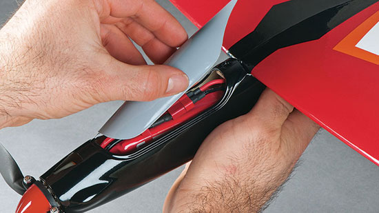 A micro receiver and two micro servos fit neatly inside the sleek fiberglass fuselage.