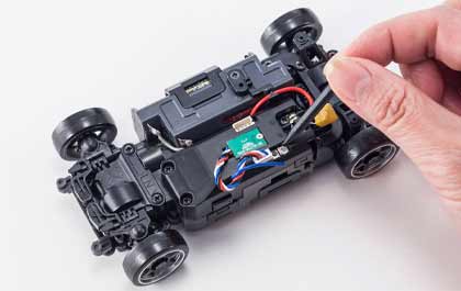 The chassis design allows space for installing the optional gyro unit(Sold separately MZW446). The gyro can be adjusted by turning a small volume on the chassis to reflect the amount of steering correction in response to changes in chassis posture, allowing beginners through to experts to drive to their full potential.