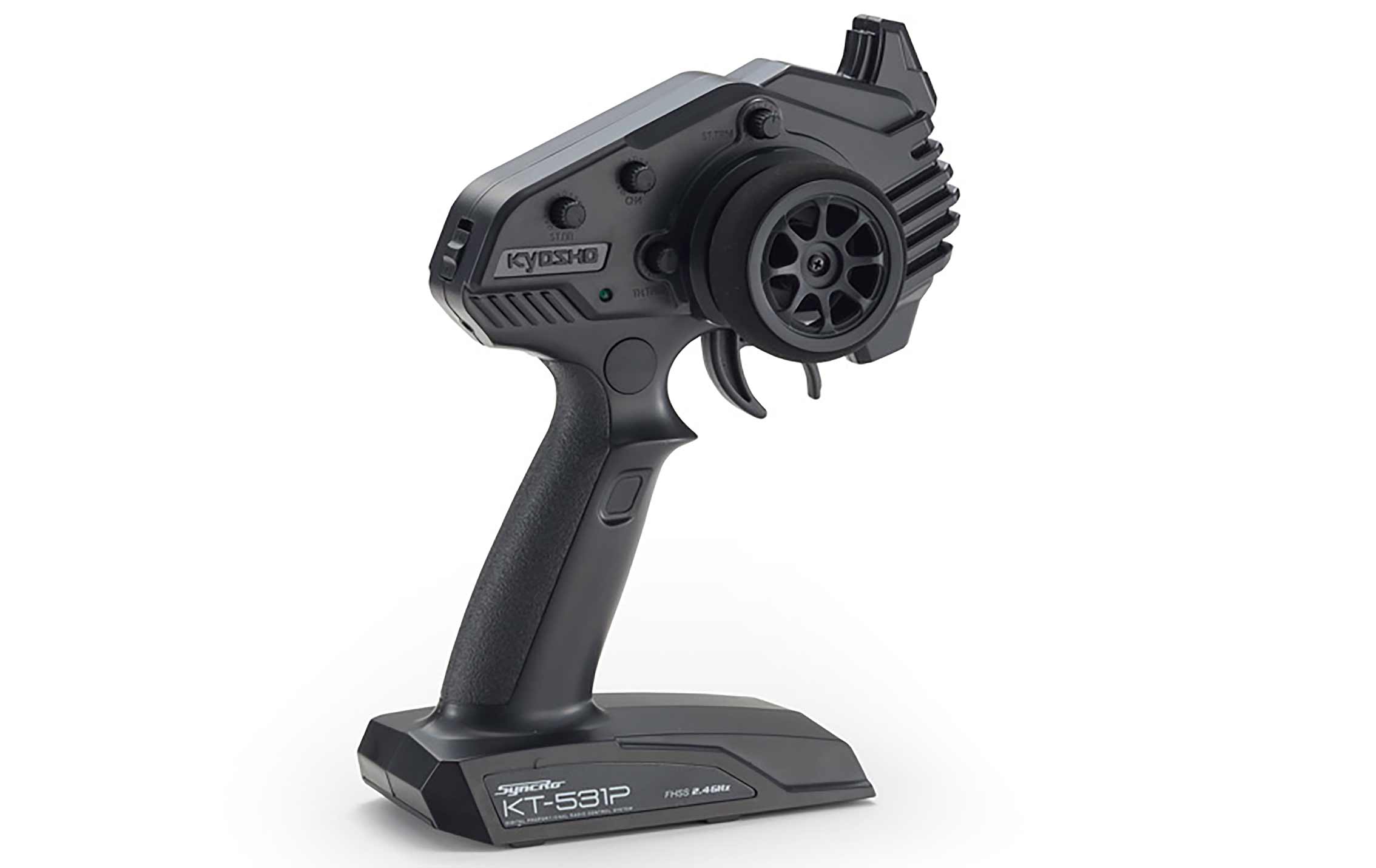 Includes stylish design of Syncro KT-531P transmitter. Features steering / throttle trim as well as dual rate adjustment of steering angle. In addition, the transmitter has a Training Mode feature which limits speed of the car for easy learning(default setting at the time of shipment is Training Mode).