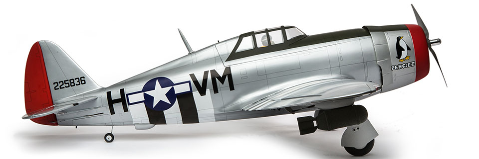 The Hangar 9® P-47D Thunderbolt 20cc ARF takes the popular warbird a bold step further. No stranger to making a great flying P-47D model, lightweight, laser-cut construction combines with expert craftsmanship to bring a durable, all-wood airframe with incredible realism and great performance. The result is a model replica that's a blast to fly and looks as though it belongs in a museum. Highlighting its outstanding appearance is a rich film covering with incredible detail and a satin finish. Stunning only comes close to the description of how the intricate panel lines and soft color transitions take this iconic warbird to deeper level. Plus, it's easy to maintain and durable. Multiple nose-art decal options included let you personalize the model to your own liking.