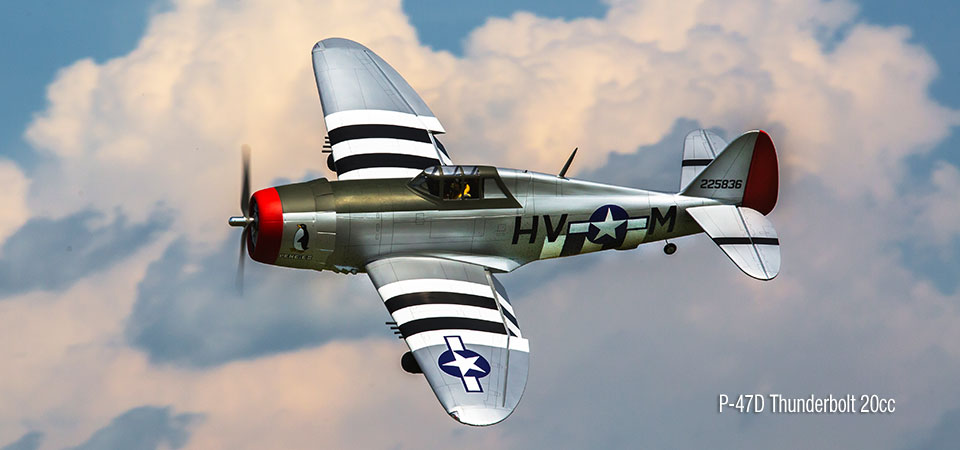Laser-cut, lightweight balsa and plywood construction is utilized to bring the P-47D Thunderbolt 20cc to life as a durable scale model that's expertly built to exacting standards.