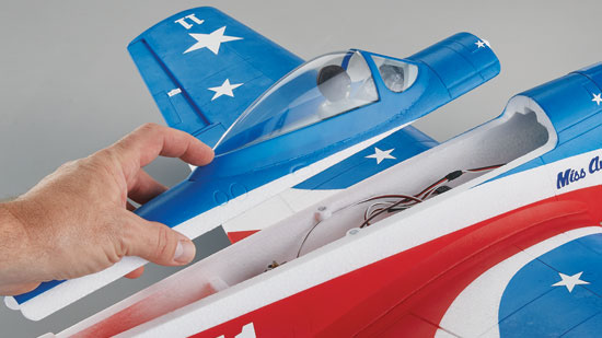Tower Hobbies® P-51D Mustang MKII EP Miss America Racer Rx-R - hand holding canopy