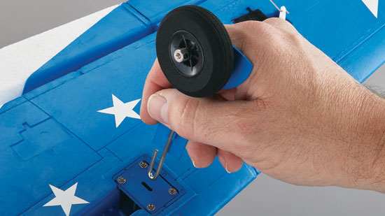 Tower Hobbies® P-51D Mustang MKII EP Miss America Racer Rx-R - hand holding landing gear