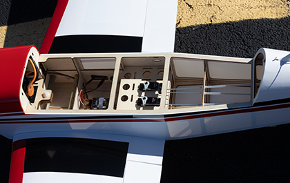 The wing panels feature a strong aluminum tube joiner for ease of transport and storage. When the model is upright, full access inside the model is through a large top hatch that makes any maintenance and battery changes simple.