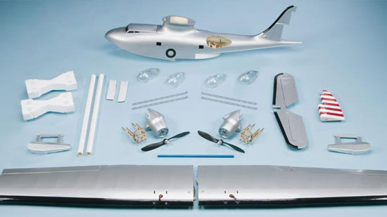 ElectriFly supplies everything needed to complete assembly in as little as ten hours — including a generous hardware package, two props, prop adapters, machined aluminum prop hubs and photo-illustrated instructions. Two spare bubble observation canopies are also provided.