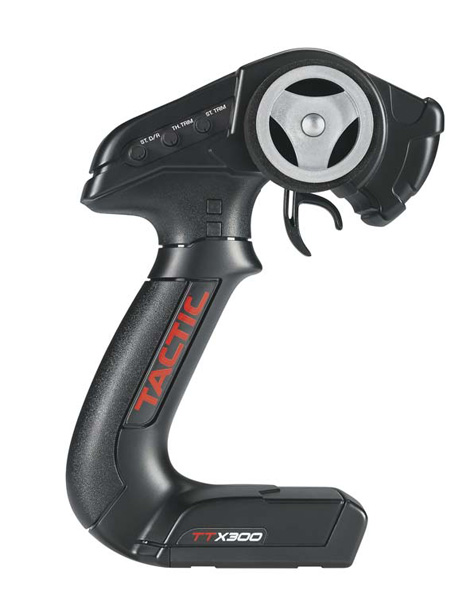 The TTX300 delivers reliable, interference-free control — along with great features such as steering and throttle reverse and trims, steering rates, two-button control of the 3rd channel and a compact 3-channel receiver.
