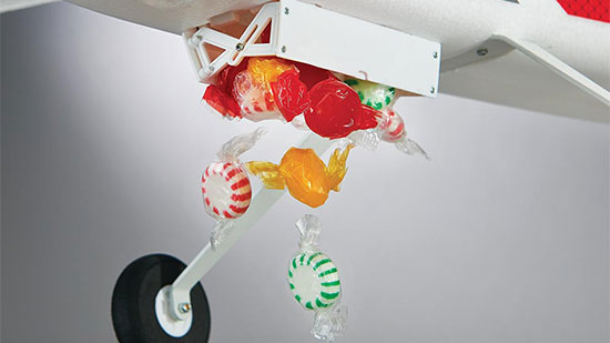 Operate the “drop-door” from the 5th channel of your radio for in-flight deployment of a parachute or other creative payloads!