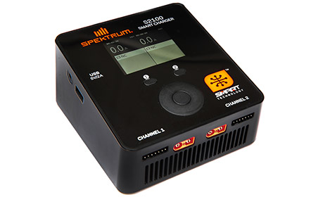 The Spektrum™ S2100 Smart Charger is a dual-output AC Smart Charger featuring Spektrum Smart Charging technology. Small and portable, this 200W charger features the Spektrum IC3™ connector that delivers a robust connection that also reads vital battery content that relays to a bright LCD color display to clearly show unique information and log data about your Smart Battery such as how many charge cycles the pack has, and much more.