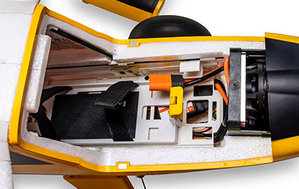 The factory-installed Spektrum brushless outrunner motor is 4S to 6S compatible to offer a wide range of “mild to wild” performance – from sport flying and basic aerobatics with 4S batteries to hovering and unlimited vertical performance with 6S batteries! The convenient top-mounted and magnetically secured hatch plus a quick-release, multi-position mounting tray makes it easy to install and remove common and popular 3200–5000mAh batteries.