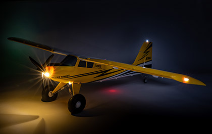 Like most other Timber models, the Super Timber comes with realistic-looking LED landing, navigation, and strobe lights that are factory-installed and powered by the flight battery. It even has additional position and landing lights for added visibility!