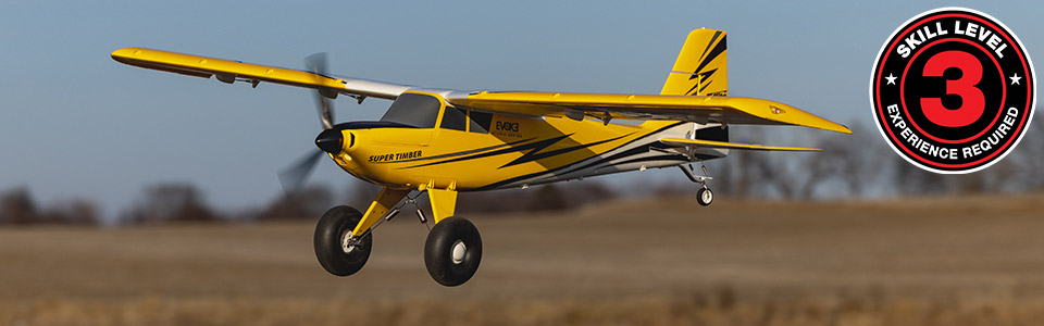 Skill Level 3 aircraft, like this one, are suitable for more experienced RC pilots who already have the skills to assemble, set up, and fly similar class models. This PNP version requires more experience and skills to assemble and fly than the BNF Basic version because you will need to install a receiver that does not already include properly tuned AS3X and SAFE Select technologies. It’s not a suitable first-ever RC aircraft for new pilots or “next step after a trainer” model for low-time to intermediate RC pilots. You should have the experience and skills necessary to successfully fly mid-sized STOL-capable models like the E-flite Timber X 1.2m, Turbo Timber Evolution 1.5m, Twin Timber 1.6m, or other similar class models before attempting to fly the Super Timber 1.7m.