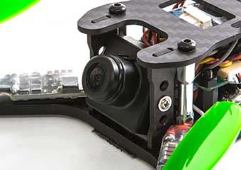 4mm carbon fiber main frame offers impressive durability and lightweight rigidity. Top plate cutouts allow for easy access to the video transmitter. Designed for durability, the camera is slightly recessed and flanked by 2mm carbon fiber, while the motors are protected with additional carbon fiber.