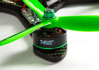 The new Thrust 2206-2450Kv motors that propel this quad strike a great balance between lightning fast speed, torque and efficiency.