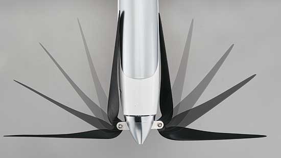 A folding prop allows for quick climbs to soaring heights at full throttle and then folds back against the fuselage to reduce drag when you turn off the motor.