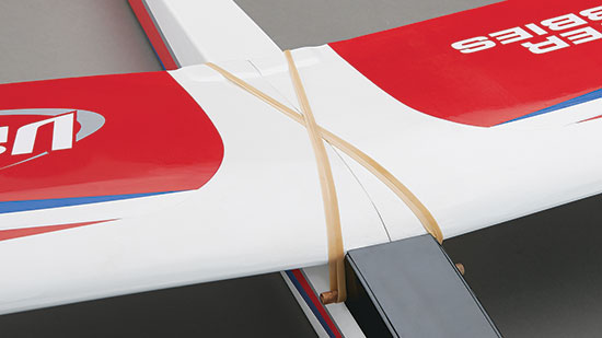 Attach the wing to the fuselage with the included rubber bands for protection against less-than-perfect landings.