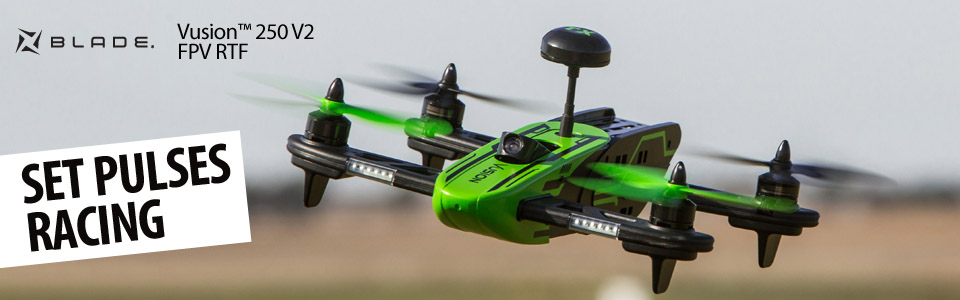 The Blade® Vusion 250 V2 builds on the popular platform with notable upgrades that make this Ready-To-Fly FPV Racer even more fun when screaming around the track or in the backyard. The durable injection molded body design hosts upgraded electronics including faster 1806-2400Kv motors driven by new DShot 300 capable ESCs for extremely smooth throttle control for that locked-in feel. The innovative modular arm design allows for quick and easy repairs―simply pop out and snap in new arms.